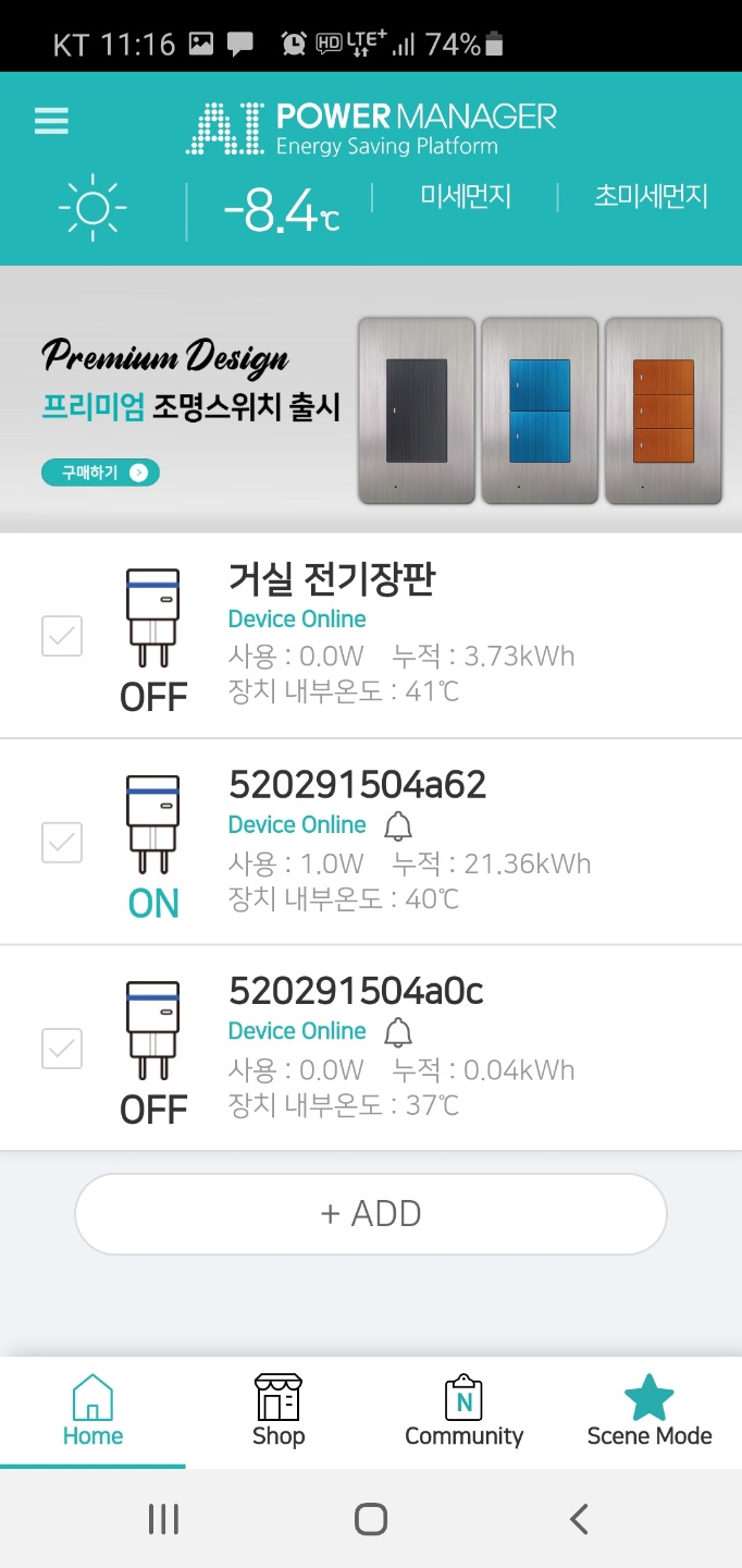 AI스마트플러그를 장착하게 되면 파워매니저 어플에서 껐다 켰다가 밖에서도 가능합니다.